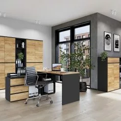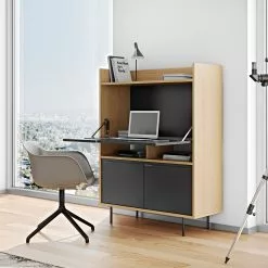 - Tischplatte & Ablagen: MDF (Mitteldichte Holzfaserplatte), melaminbeschichtet