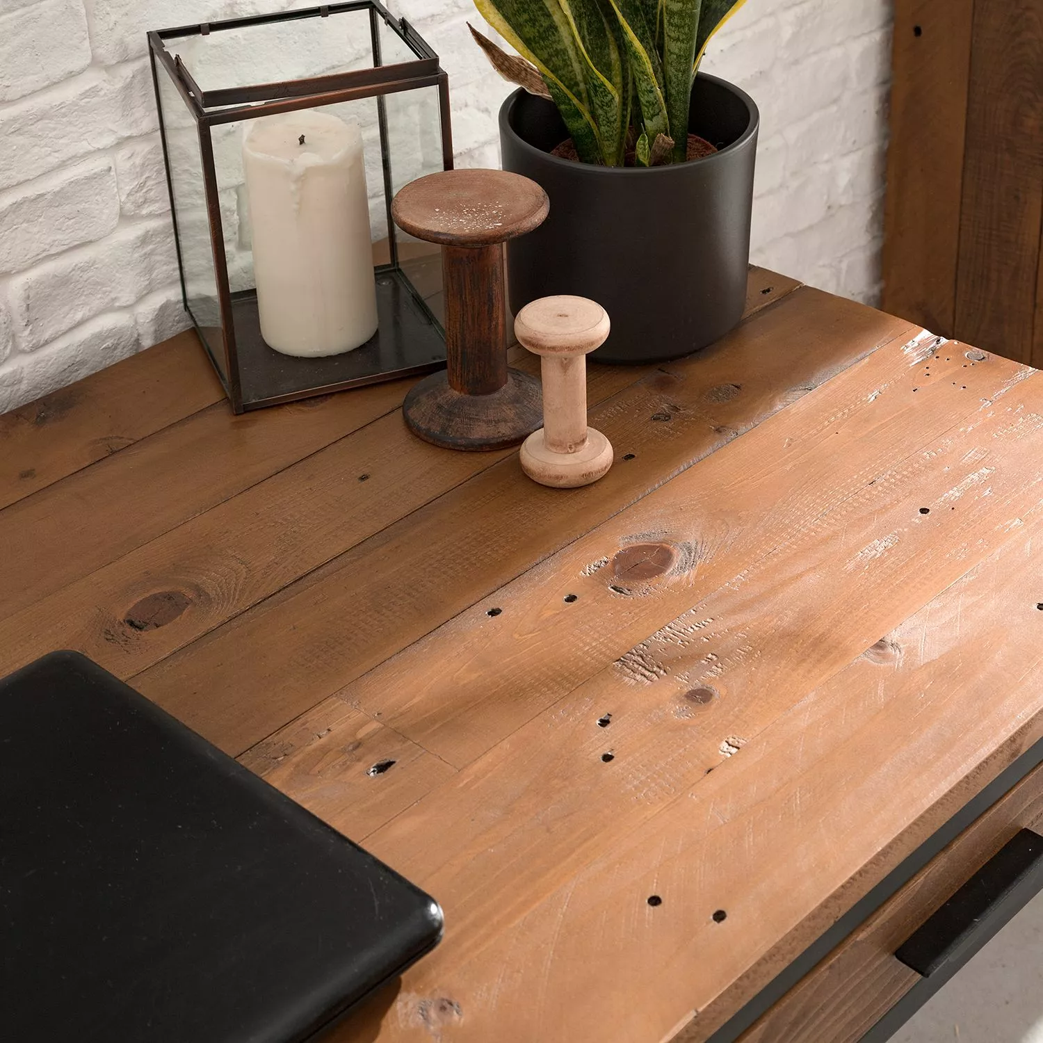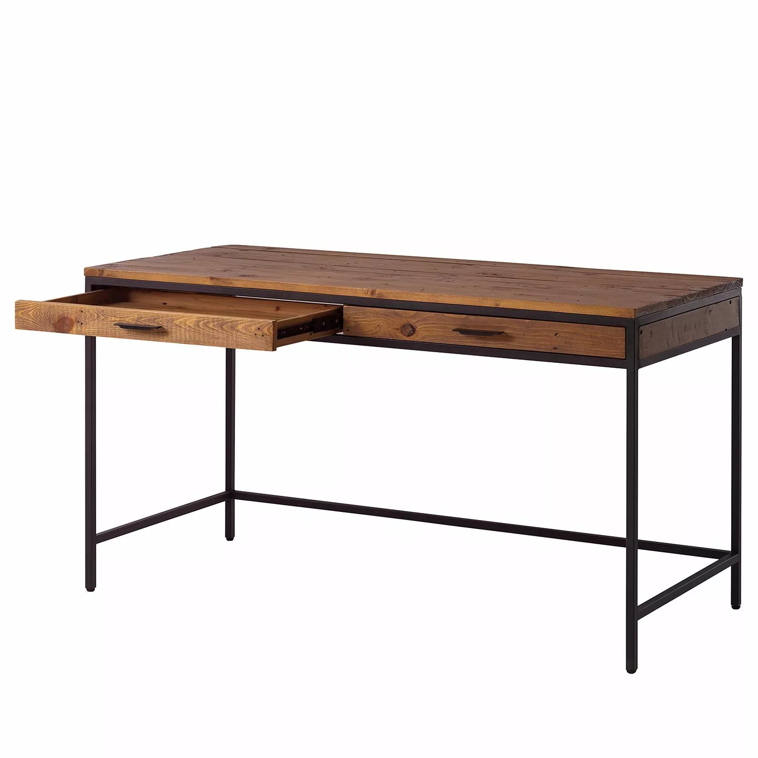 Ars manufacti Schreibtisch Grasby – Pinie massiv / Metall – Pinie / Schwarz