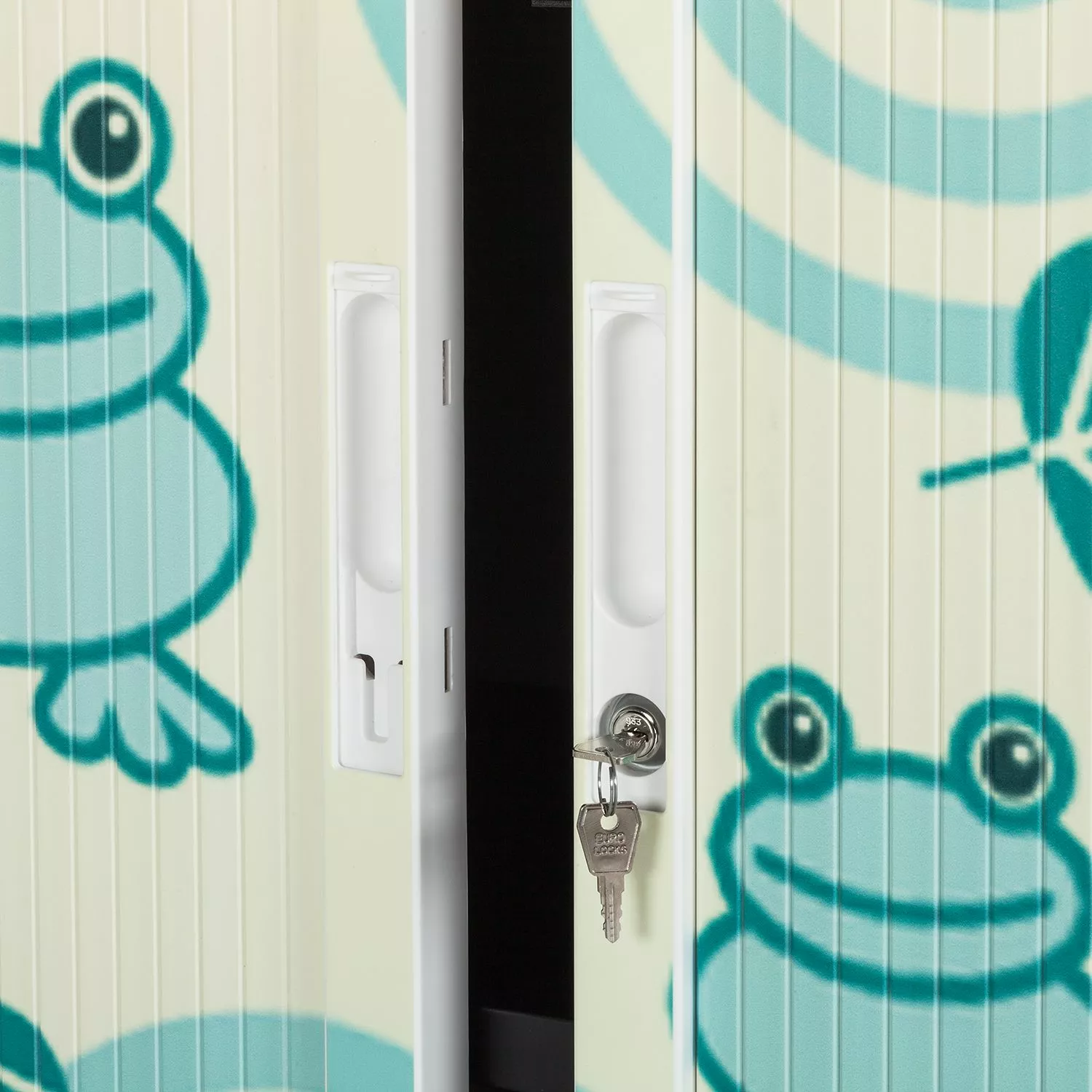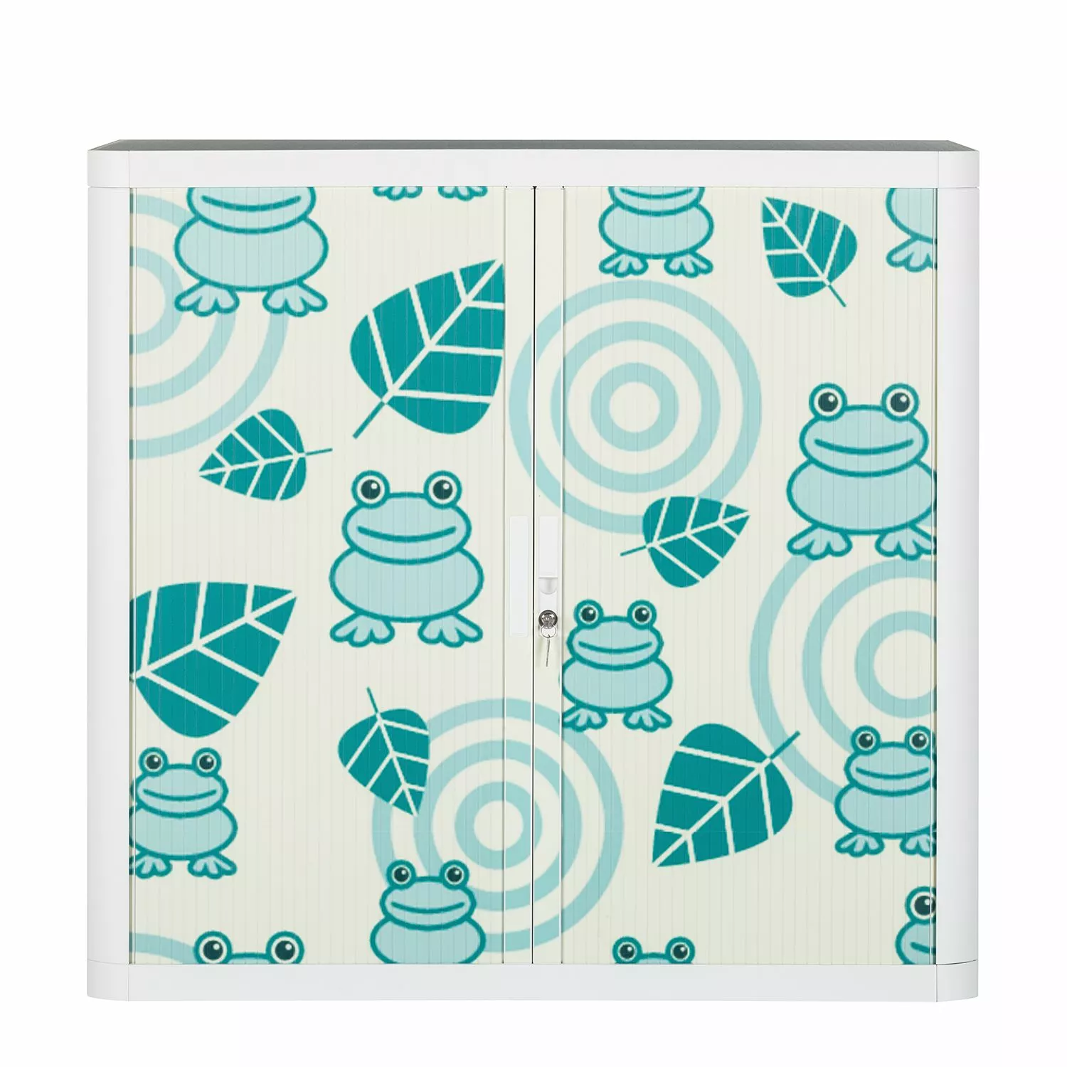 - Korpus: WeißOberplatte: PetrolFront: Gelb mit türkisen Fröschen & Blättern