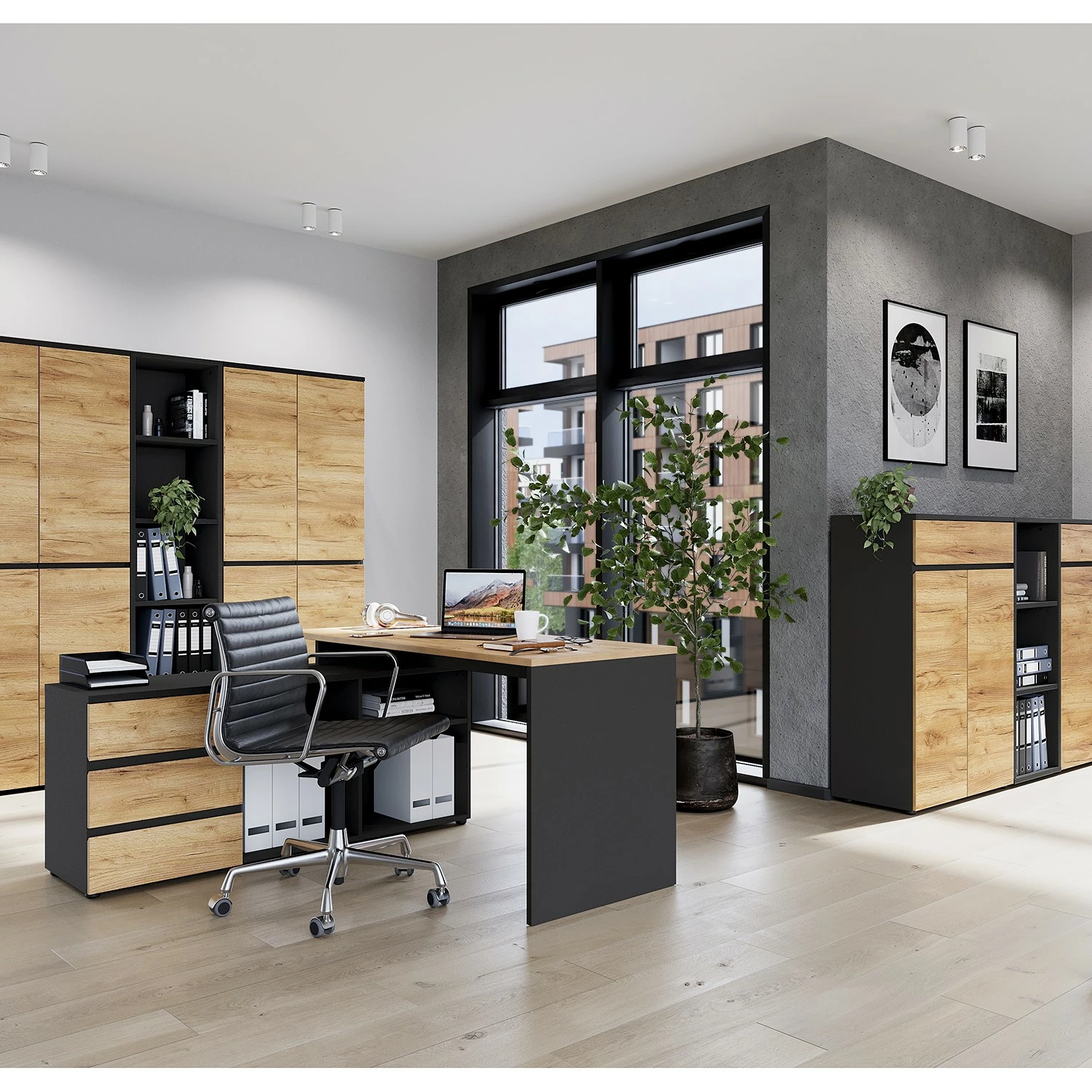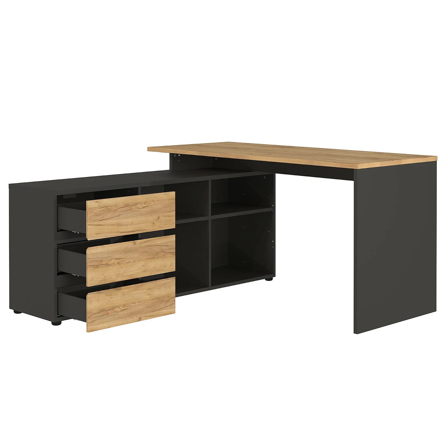 - Lieferumfang: Büroset bestehend 1 Eckschreibtisch, 2 Aktenschränken & 2 Aktenregalen