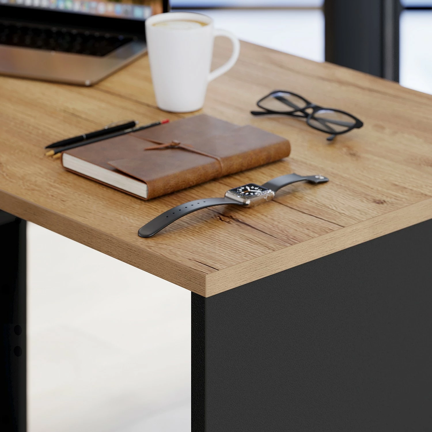 - Tischplatte & Front: Eiche Navarra Dekor