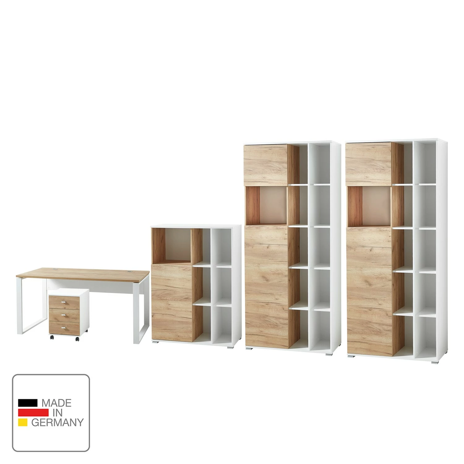 - Front: MDF (Mitteldichte Holzfaserplatte), foliert