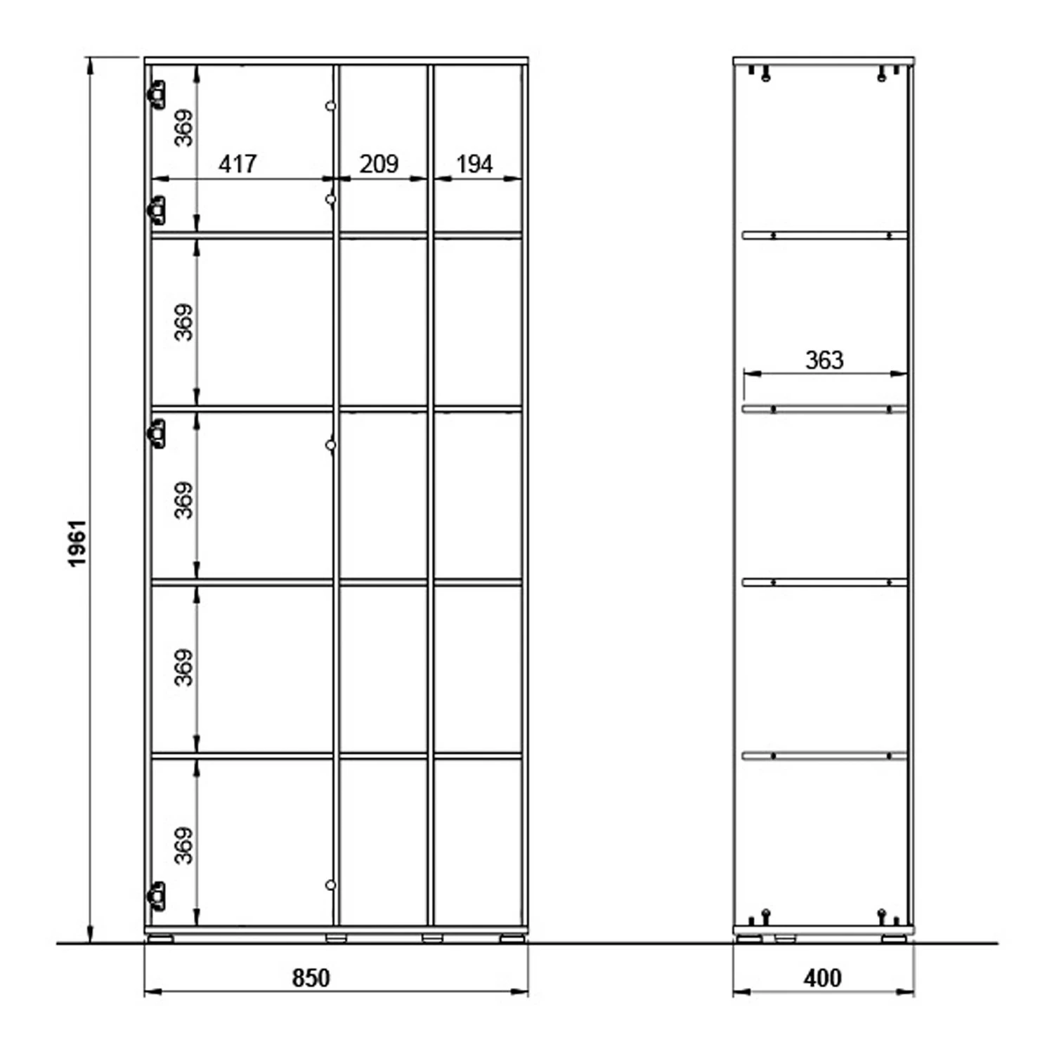 - Weitere Maße: je Schrank: Breite 85 cm
