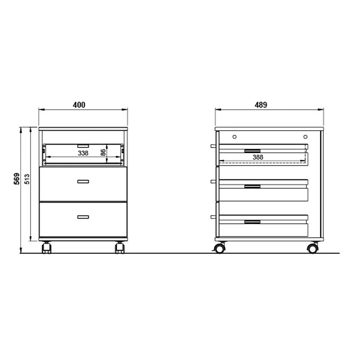 - Rollcontainer: 40 x 57 x 49 cm
