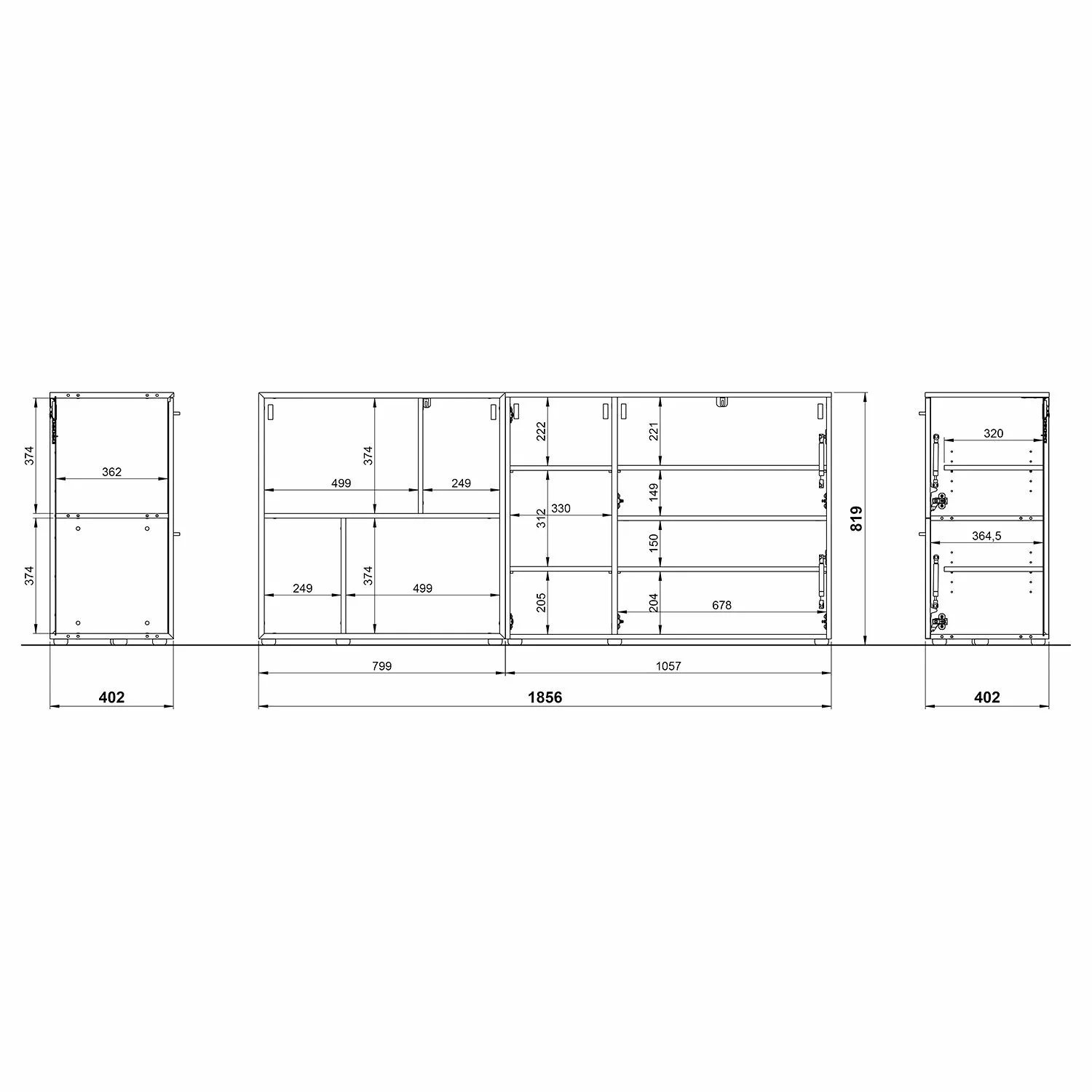 - Anzahl feste Fachböden: 1 Fachboden