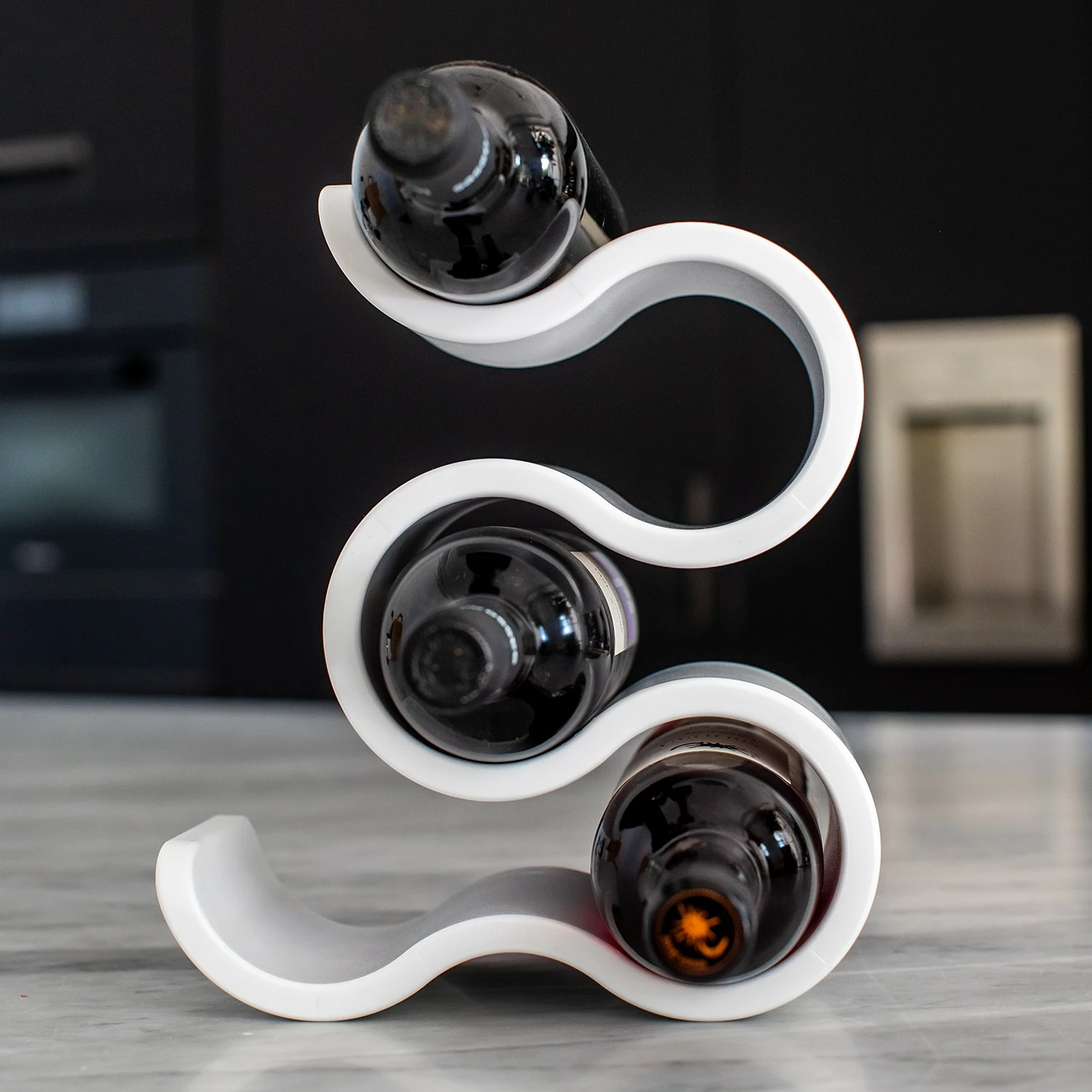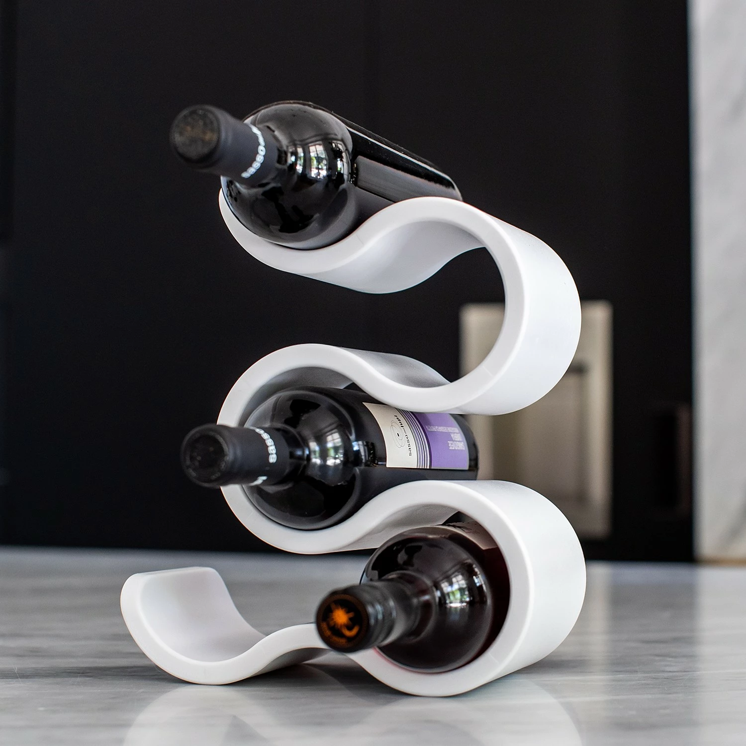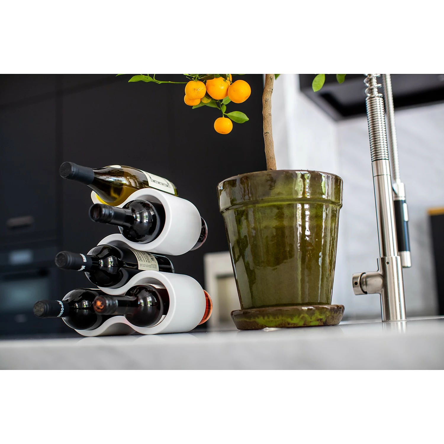 Das BOA Flaschenregal umgarnt mit jeder Menge dekorativer Verve bis zu fünf Flaschen der Wahl. Innerhalb seiner eleganten und gleichzeitig stabilen Schwünge setzt es Wein, Wasser oder Likör überaus dynamisch in Szene – und folgt hierbei stets dem praktischen Grundsatz: Stapeln ist besser als Stellen! Deshalb kann sich BOA auf der festlichen Tafel ebenso souverän präsentieren wie als platzsparende Minibar im Regal, auf dem Sideboard oder Beistelltisch.