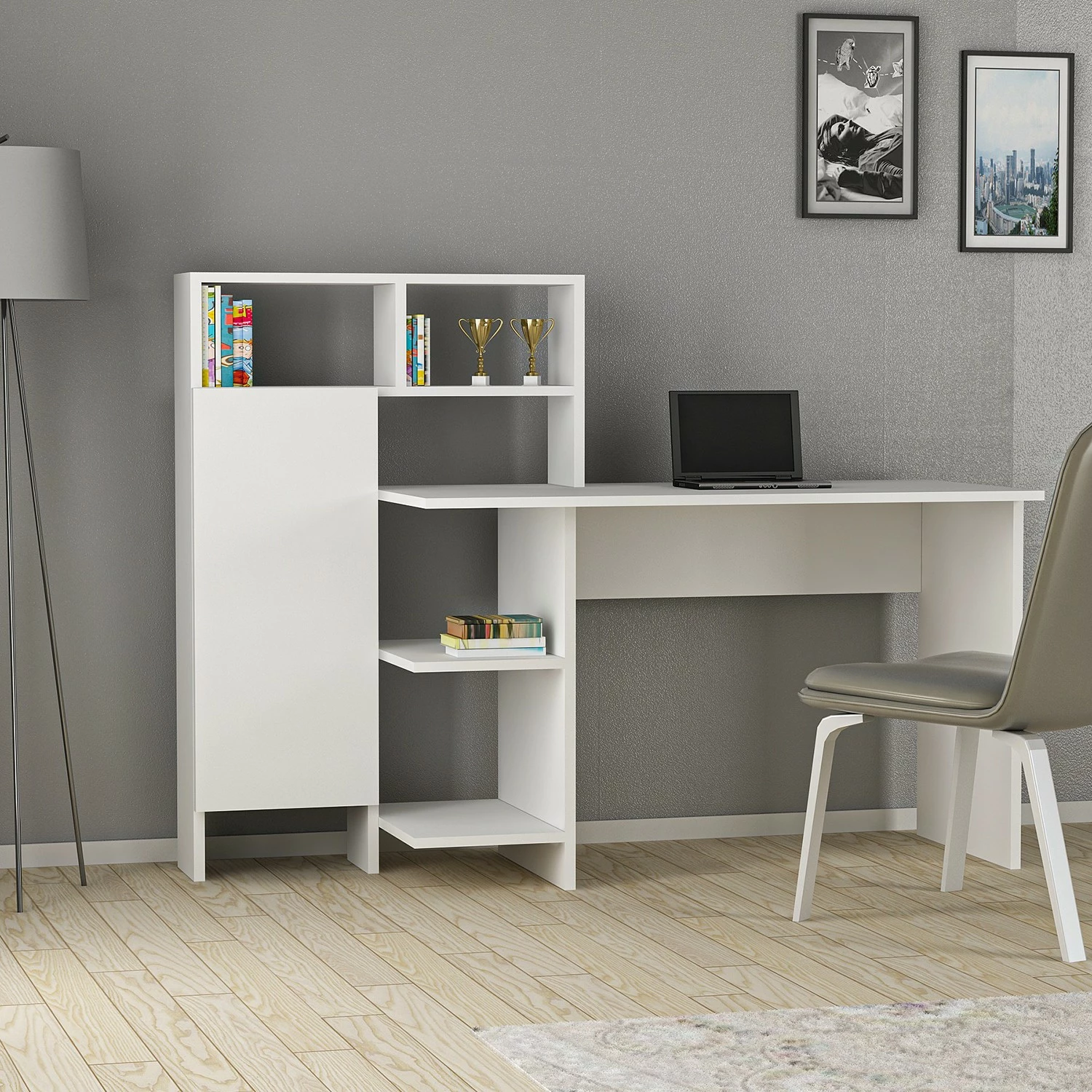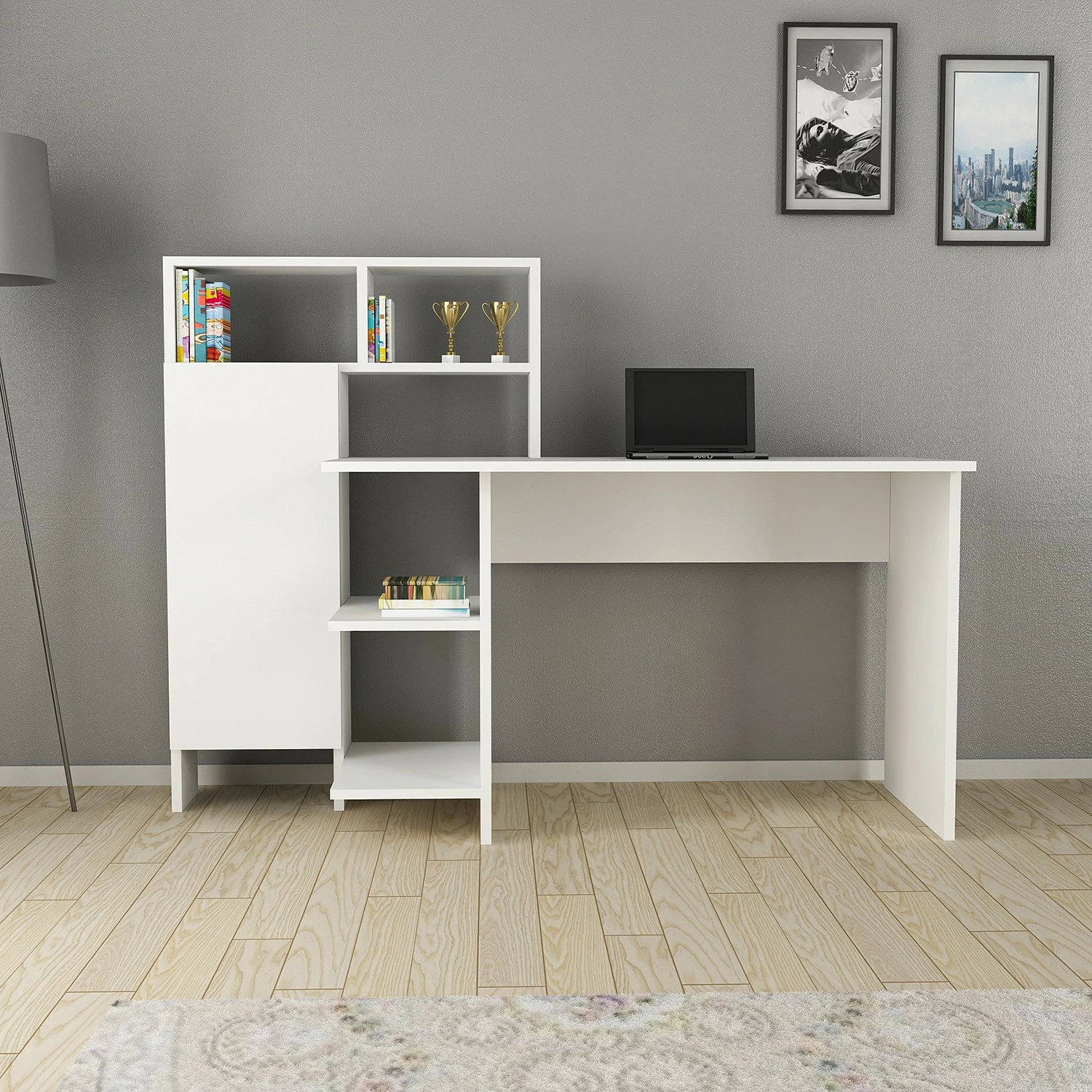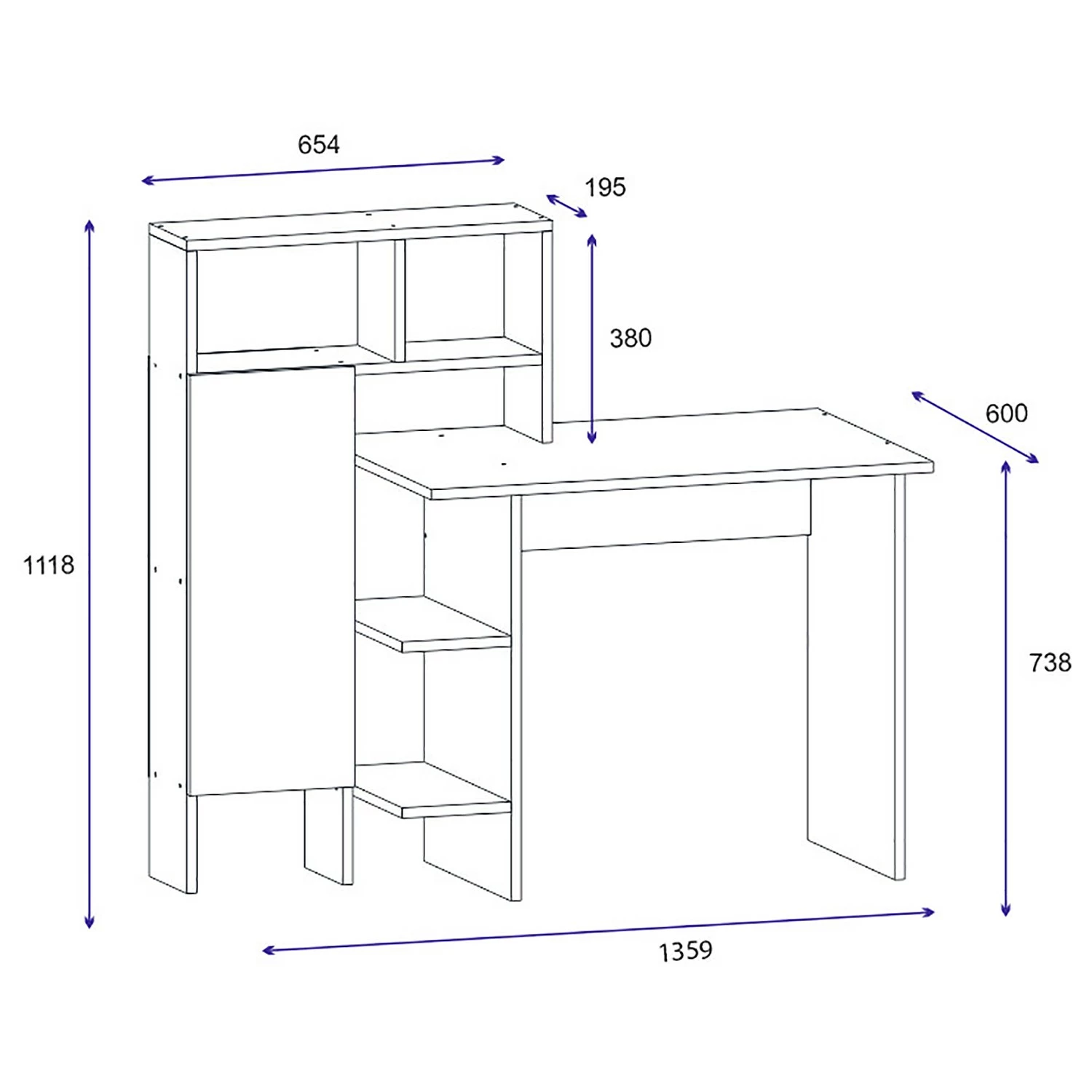 - Tischplatte & Regal: MDF (Mitteldichte Holzfaserplatte), melaminbeschichtet