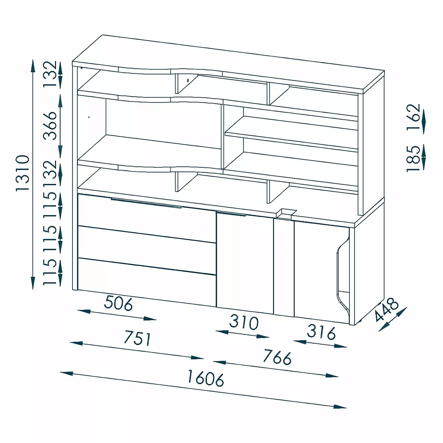 - Lieferumfang: Ausführung rechts vom Schreibtisch platzierbar
