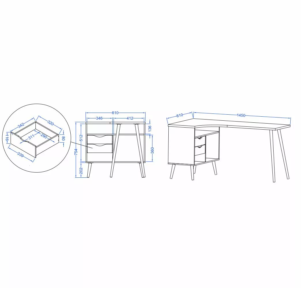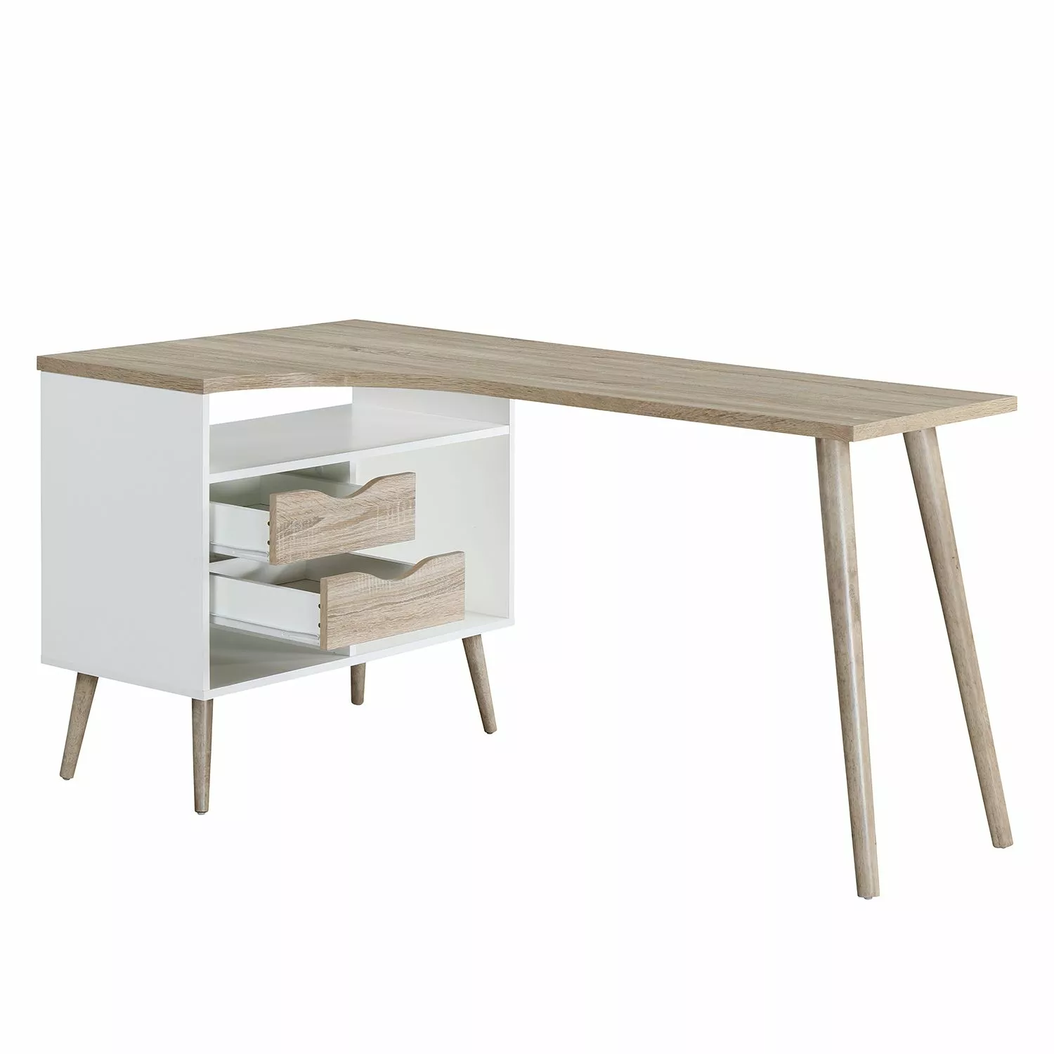 - Lieferumfang: Eckschreibtisch ohne Dekoration