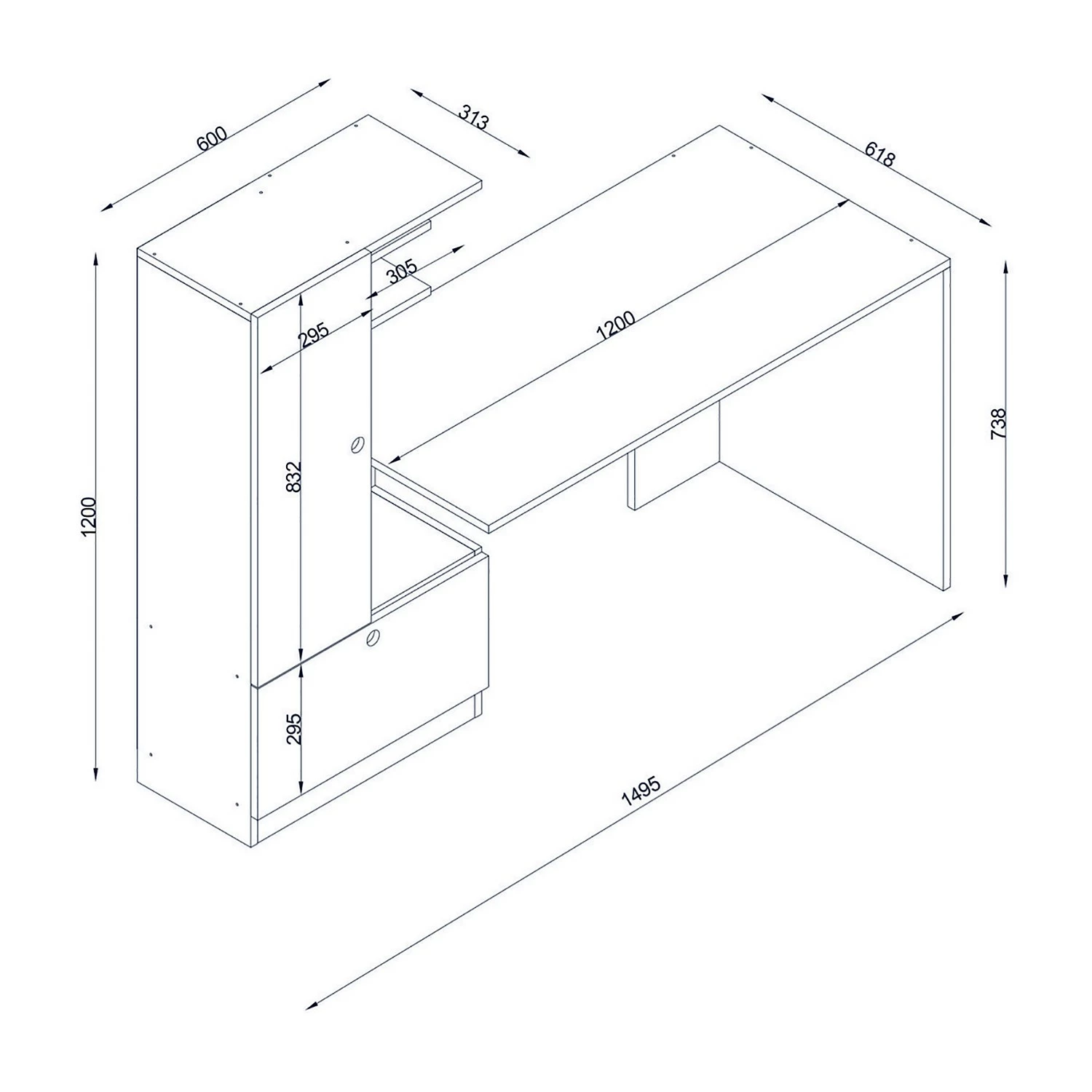 - Weitere Maße: Regal: 60 x 120 x 31,3 cm