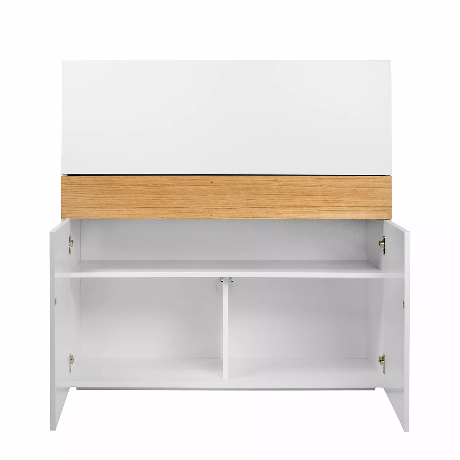 - Front & Korpus: Spanplatte & MDF (Mitteldichte Holzfaserplatte), lackiert