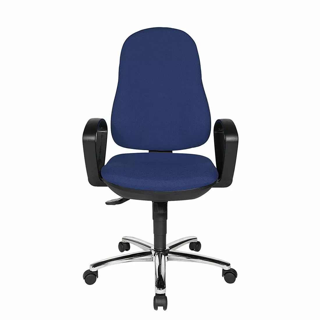 Der Hersteller Topstar hat mit diesem blauen Bürostuhl die perfekte Ergänzung zu modern eingerichteten Räumen geschaffen. Eine echte Besonderheit ist bei diesem Bürodrehstuhl die individuelle Höhenverstellbarkeit. Der unkomplizierte Kunststoff des Bürodrehstuhls ist besonders pflegeleicht. Mithilfe der Rollen an den Beinen lässt er sich außerdem flexibel in unterschiedlichen Räumen nutzen. Dank des Bezugs aus Stoff sitzt man auf dem Bürodrehstuhl obendrein gemütlich.